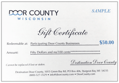 Door County Gift Certificates make the perfect gift for friends, family, or anyone who loves or visits the Door County region. Certificates are redeemable at hundreds of restaurants, lodgings, stores, attractions, and other businesses across the county.